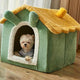 Cat House with Detachable Roof, Dog Bed Kitten&Puppy House Indoor Luxary Adult Cat Bed (Green&Yellow, Small)