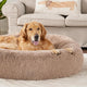 Round Donut Pet Bed for Cats and Puppies Dogs, Cozy and Plush, Raised Bedside Support, Both Sides Use Like 2 in One, Washable, Sizes for Small, Medium, and Large Pets. (Brown, Large)